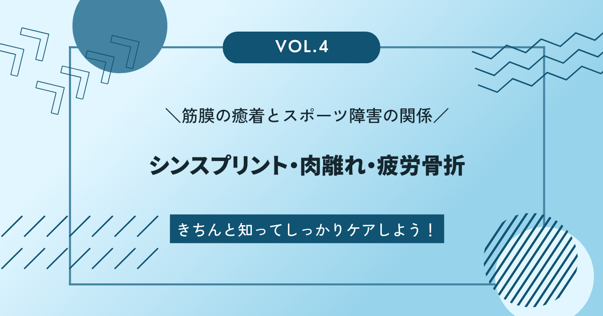 アスリートにとって、日々のトレーニングは不可欠です。しかし、スポーツを続けている中で避けられないのがスポーツ障害です。中でも、筋膜が癒着することによって引き起こされるスポーツ障害は、適切な治療をしない限り、パフォーマンス低下や長期的な障害を引き起こすリスクがあります。特にアスリートに多い「シンスプリント」「肉離れ」「疲労骨折」に焦点を当て、筋膜の癒着がこれらのケガにどのような影響を与えるのか、そして改善にはどのような専門的な治療が必要なのかを思考します。